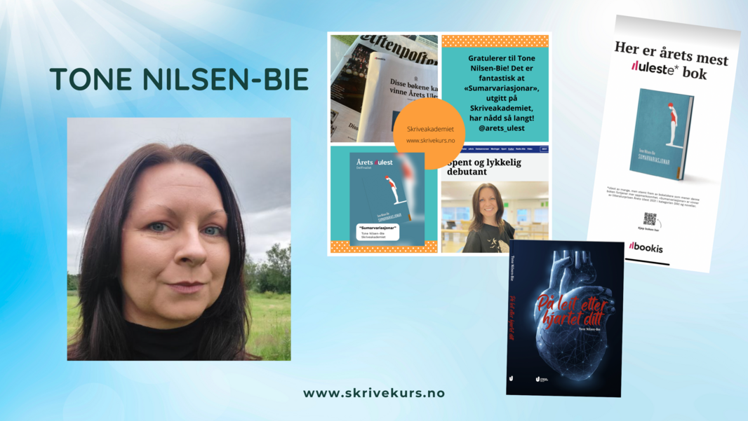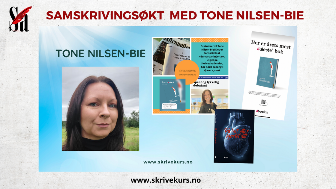 Tone Nilsen-Bie har gitt ut to kritikerroste bøker for barn og unge, som begge ble innkjøpt av Kulturrådets Innkjøpsordning: Sumarvariasjonar, (Skriveakademiet) og På leit etter hjartet ditt, (Utenfor Allfarvei Forlag.)